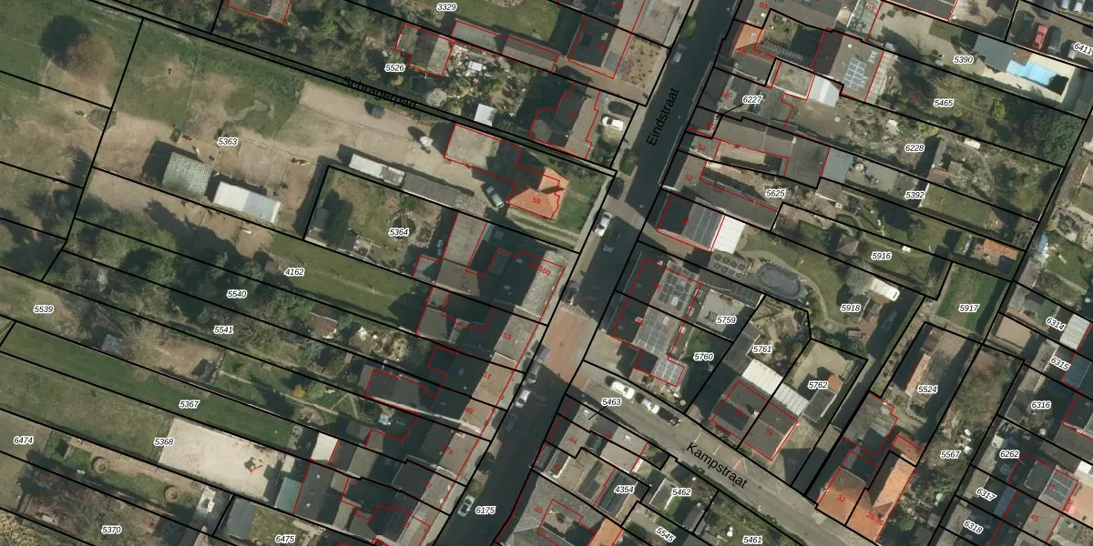 Eindstraat 55-b is gelegen op kadastraal perceel SVD00A5364. Deze kadastrale aanduiding is uniek en wordt gebruikt door het Kadaster om eigendomsrechten en andere zakelijke rechten vast te leggen. Het perceel maakt onderdeel uit van de kadastrale gemeente Schinveld.