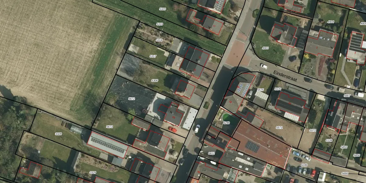 Eindstraat 71 is gelegen op kadastraal perceel SVD00A5306. Deze kadastrale aanduiding is uniek en wordt gebruikt door het Kadaster om eigendomsrechten en andere zakelijke rechten vast te leggen. Het perceel maakt onderdeel uit van de kadastrale gemeente Schinveld.