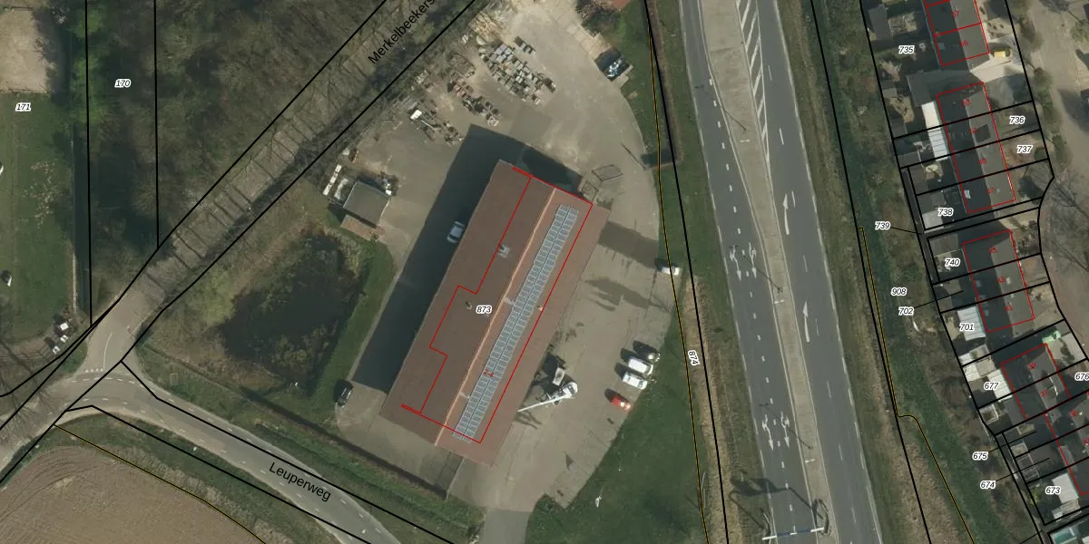 Het perceel waarop het adres ligt is SVD00-C-873. De afkorting 'SVD00' staat voor kadastrale gemeente Schinveld. De oppervlakte van het perceel is 8052 m². Dat is groter dan gemiddeld in Schinveld, waar de gemiddelde perceeloppervlakte op 3095,47 m² ligt. Het kleinste perceel in de kadastrale gemeente is 0 m² groot. De grootste perceeloppervlakte is 33,4 ha. Er zijn 2 adressen aanwezig op het perceel. De huidige grenzen van het perceel zijn digitaal in de Basisregistratie Kadaster (BRK) geregistreerd op 15-05-2018.