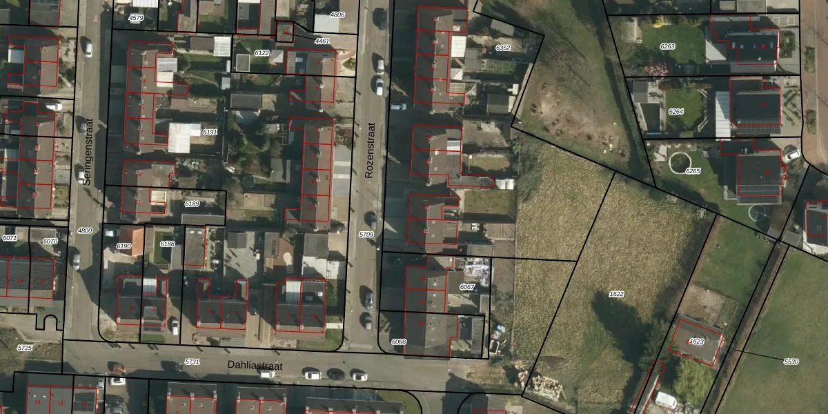 Het perceel waarop Rozenstraat 29 staat heeft een oppervlakte van 3595 m². Dit is een zeer groot perceel. De perceeloppervlakte wordt geregistreerd door het Kadaster. Gedetailleerde informatie over de maten van dit perceel kunt u vinden in het rapport Kadastrale kaart met maatvoering van Rozenstraat 29.