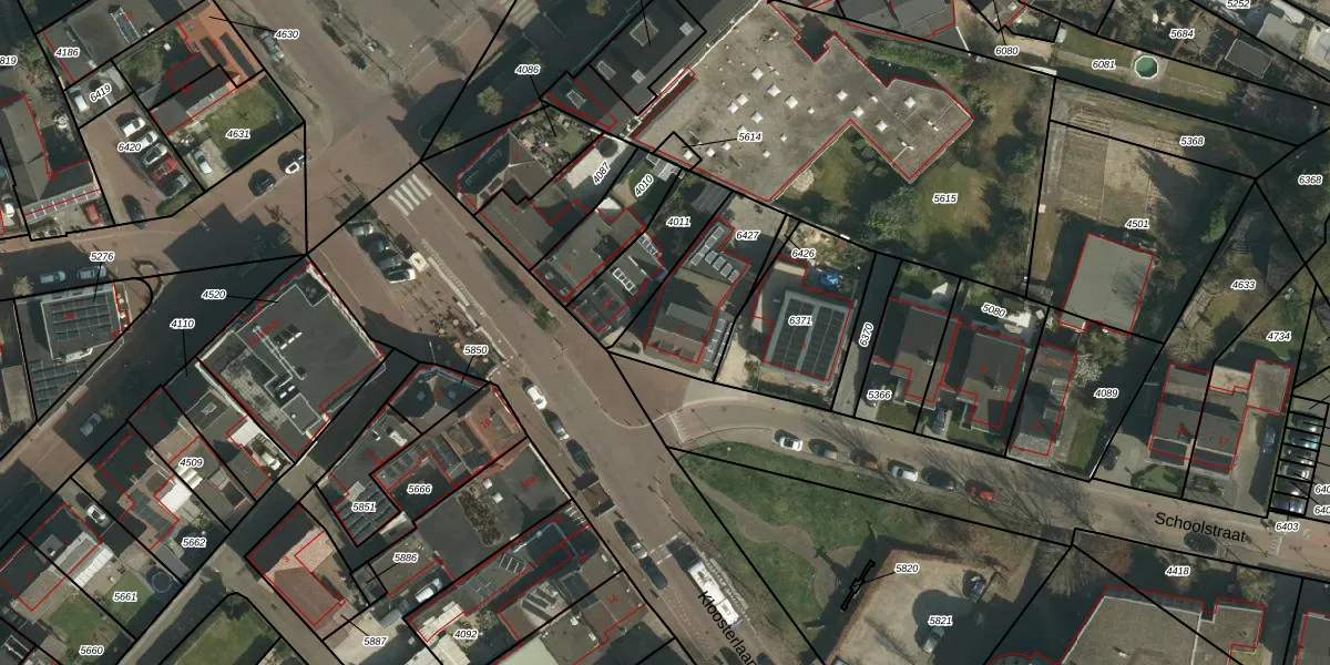 Schoolstraat 1 is gelegen op kadastraal perceel SVD00B6427. Deze kadastrale aanduiding is uniek en wordt gebruikt door het Kadaster om eigendomsrechten en andere zakelijke rechten vast te leggen. Het perceel maakt onderdeel uit van de kadastrale gemeente Schinveld.