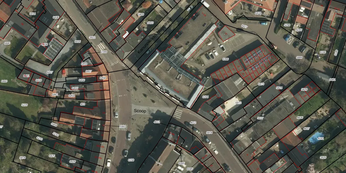 Het perceel waarop Scoop 12 staat heeft een oppervlakte van 2458 m². Dit is een zeer groot perceel. De perceeloppervlakte wordt geregistreerd door het Kadaster. Gedetailleerde informatie over de maten van dit perceel kunt u vinden in het rapport Kadastrale kaart met maatvoering van Scoop 12.