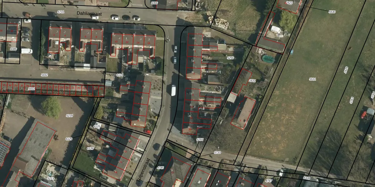 Tulpenstraat 9 is gelegen op kadastraal perceel SVD00B5256. Deze kadastrale aanduiding is uniek en wordt gebruikt door het Kadaster om eigendomsrechten en andere zakelijke rechten vast te leggen. Het perceel maakt onderdeel uit van de kadastrale gemeente Schinveld.