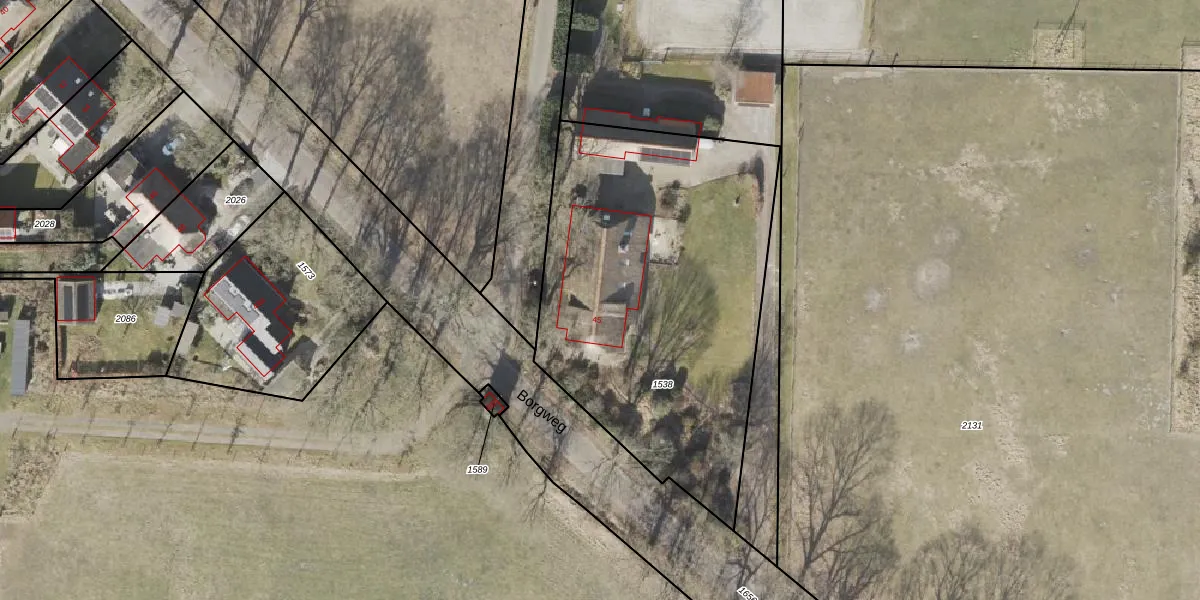Borgweg 45 is gelegen op kadastraal perceel ALO00P1538. Deze kadastrale aanduiding is uniek en wordt gebruikt door het Kadaster om eigendomsrechten en andere zakelijke rechten vast te leggen. Het perceel maakt onderdeel uit van de kadastrale gemeente Anloo.