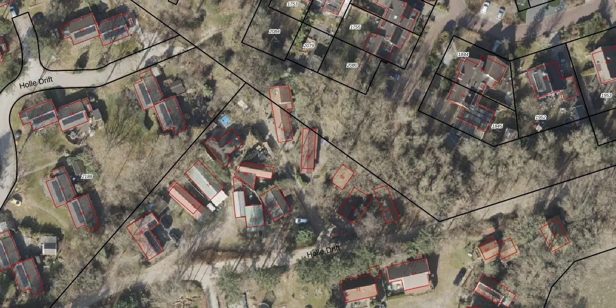 Het perceel waarop Holle Drift 60 staat heeft een oppervlakte van 1,8 ha. Dit is een zeer groot perceel. De perceeloppervlakte wordt geregistreerd door het Kadaster. Gedetailleerde informatie over de maten van dit perceel kunt u vinden in het rapport Kadastrale kaart met maatvoering van Holle Drift 60.