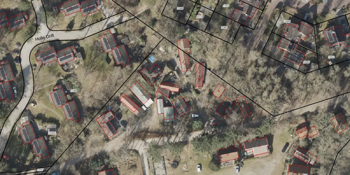Het perceel waarop Holle Drift 66 staat heeft een oppervlakte van 1,8 ha. Dit is een zeer groot perceel. De perceeloppervlakte wordt geregistreerd door het Kadaster. Gedetailleerde informatie over de maten van dit perceel kunt u vinden in het rapport Kadastrale kaart met maatvoering van Holle Drift 66.