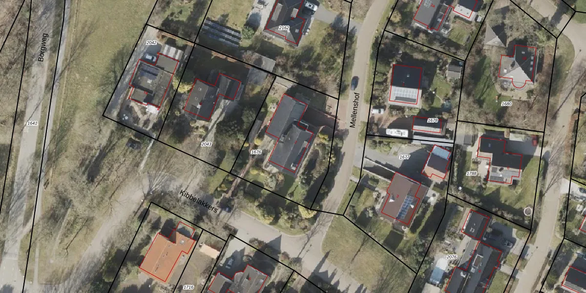 Het perceel waarop Mellenshof 2 staat heeft een oppervlakte van 1045 m². Dit is een zeer groot perceel. De perceeloppervlakte wordt geregistreerd door het Kadaster. Gedetailleerde informatie over de maten van dit perceel kunt u vinden in het rapport Kadastrale kaart met maatvoering van Mellenshof 2.
