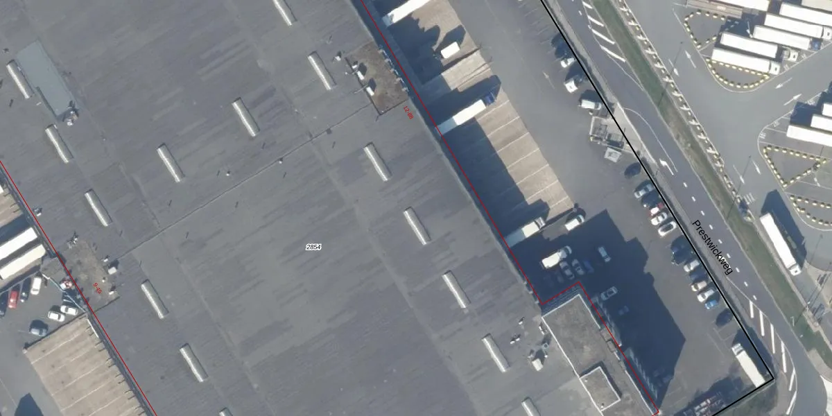 Het perceel waarop Prestwickweg 54 staat heeft een oppervlakte van 3,7 ha. Dit is een zeer groot perceel. De perceeloppervlakte wordt geregistreerd door het Kadaster. Gedetailleerde informatie over de maten van dit perceel kunt u vinden in het rapport Kadastrale kaart met maatvoering van Prestwickweg 54.