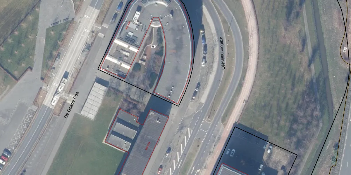 Het perceel waarop Stationsplein-NO 404 staat heeft een oppervlakte van 2454 m². Dit is een zeer groot perceel. De perceeloppervlakte wordt geregistreerd door het Kadaster. Gedetailleerde informatie over de maten van dit perceel kunt u vinden in het rapport Kadastrale kaart met maatvoering van Stationsplein-NO 404.