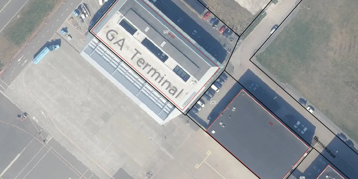 Het perceel waarop Thermiekstraat 94 staat heeft een oppervlakte van 3724 m². Dit is een zeer groot perceel. De perceeloppervlakte wordt geregistreerd door het Kadaster. Gedetailleerde informatie over de maten van dit perceel kunt u vinden in het rapport Kadastrale kaart met maatvoering van Thermiekstraat 94.