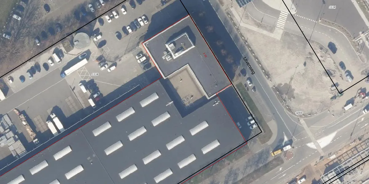 Het perceel waarop Uiverweg 6 staat heeft een oppervlakte van 1,9 ha. Dit is een zeer groot perceel. De perceeloppervlakte wordt geregistreerd door het Kadaster. Gedetailleerde informatie over de maten van dit perceel kunt u vinden in het rapport Kadastrale kaart met maatvoering van Uiverweg 6.