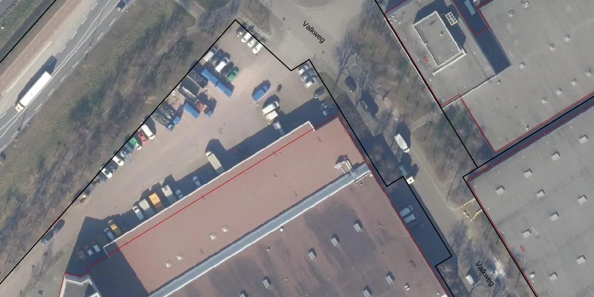 Het perceel waarop Valkweg 2 staat heeft een oppervlakte van 2,4 ha. Dit is een zeer groot perceel. De perceeloppervlakte wordt geregistreerd door het Kadaster. Gedetailleerde informatie over de maten van dit perceel kunt u vinden in het rapport Kadastrale kaart met maatvoering van Valkweg 2.