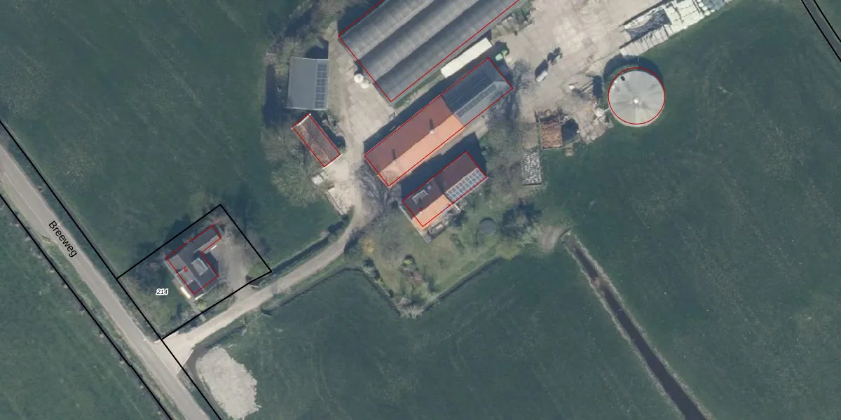 Het perceel waarop Breeweg 3 staat heeft een oppervlakte van 5,5 ha. Dit is een zeer groot perceel. De perceeloppervlakte wordt geregistreerd door het Kadaster. Gedetailleerde informatie over de maten van dit perceel kunt u vinden in het rapport Kadastrale kaart met maatvoering van Breeweg 3.
