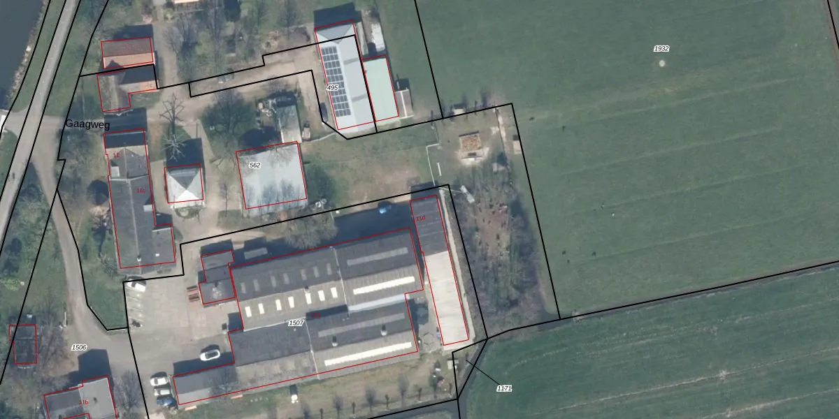 Het perceel waarop Gaagweg 11-d staat heeft een oppervlakte van 3955 m². Dit is een zeer groot perceel. De perceeloppervlakte wordt geregistreerd door het Kadaster. Gedetailleerde informatie over de maten van dit perceel kunt u vinden in het rapport Kadastrale kaart met maatvoering van Gaagweg 11-d.