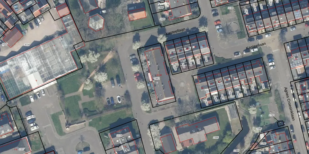 Het perceel waarop Kasteellaan 40 staat heeft een oppervlakte van 608 m². Dit is een groot perceel. De perceeloppervlakte wordt geregistreerd door het Kadaster. Gedetailleerde informatie over de maten van dit perceel kunt u vinden in het rapport Kadastrale kaart met maatvoering van Kasteellaan 40.