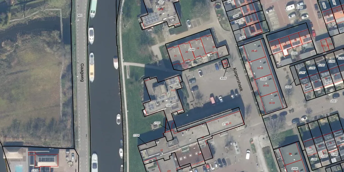 Het perceel waarop Korpershoek 9 staat heeft een oppervlakte van 1005 m². Dit is een zeer groot perceel. De perceeloppervlakte wordt geregistreerd door het Kadaster. Gedetailleerde informatie over de maten van dit perceel kunt u vinden in het rapport Kadastrale kaart met maatvoering van Korpershoek 9.