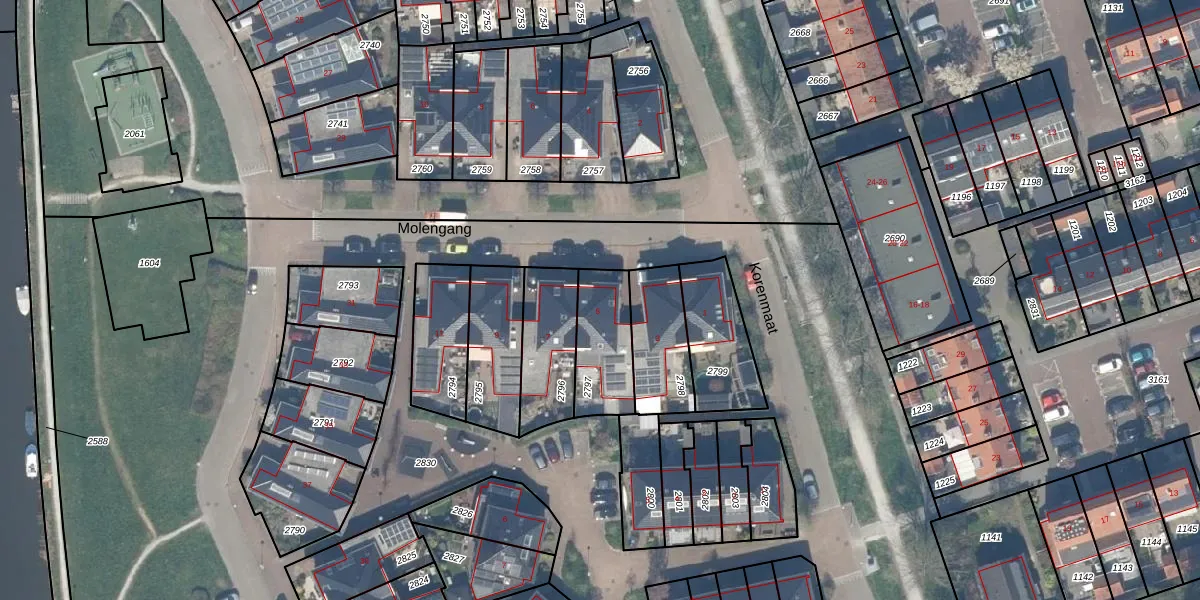 Het perceel waarop Molengang 5 staat heeft een oppervlakte van 226 m². Dit is een middelgroot perceel. De perceeloppervlakte wordt geregistreerd door het Kadaster. Gedetailleerde informatie over de maten van dit perceel kunt u vinden in het rapport Kadastrale kaart met maatvoering van Molengang 5.