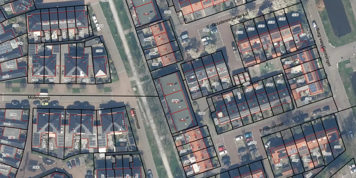 Prunusstraat 24 is gelegen op kadastraal perceel SLD02B2690. Deze kadastrale aanduiding is uniek en wordt gebruikt door het Kadaster om eigendomsrechten en andere zakelijke rechten vast te leggen. Het perceel maakt onderdeel uit van de kadastrale gemeente Schipluiden.