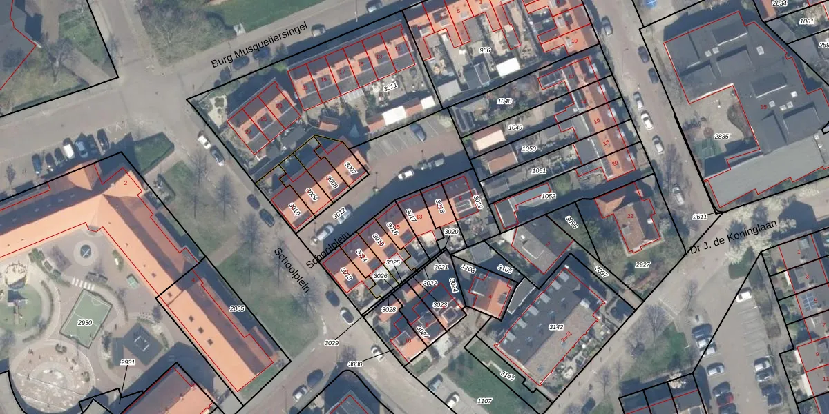 Het perceel waarop Schoolplein 13 staat heeft een oppervlakte van 86 m². Dit is een klein perceel. De perceeloppervlakte wordt geregistreerd door het Kadaster. Gedetailleerde informatie over de maten van dit perceel kunt u vinden in het rapport Kadastrale kaart met maatvoering van Schoolplein 13.