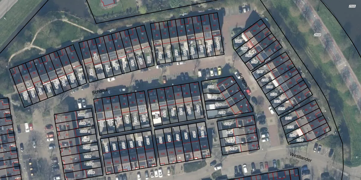 Het perceel waarop Schouw 36 staat heeft een oppervlakte van 95 m². Dit is een klein perceel. De perceeloppervlakte wordt geregistreerd door het Kadaster. Gedetailleerde informatie over de maten van dit perceel kunt u vinden in het rapport Kadastrale kaart met maatvoering van Schouw 36.