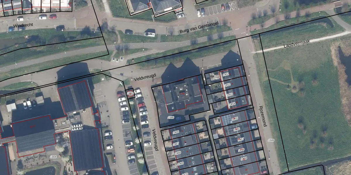 Het perceel waarop Veldvreugd 1 staat heeft een oppervlakte van 655 m². Dit is een groot perceel. De perceeloppervlakte wordt geregistreerd door het Kadaster. Gedetailleerde informatie over de maten van dit perceel kunt u vinden in het rapport Kadastrale kaart met maatvoering van Veldvreugd 1.