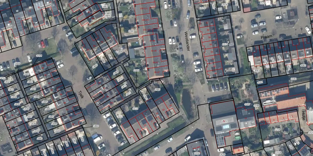 Het perceel waarop Westlander 85 staat heeft een oppervlakte van 1479 m². Dit is een zeer groot perceel. De perceeloppervlakte wordt geregistreerd door het Kadaster. Gedetailleerde informatie over de maten van dit perceel kunt u vinden in het rapport Kadastrale kaart met maatvoering van Westlander 85.