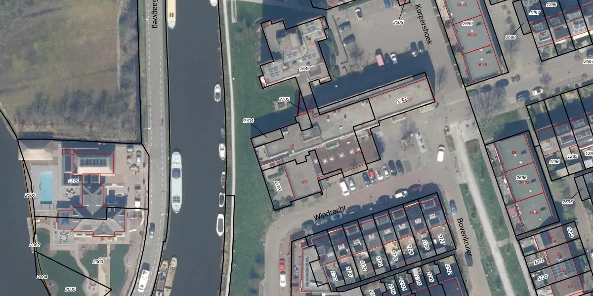 Het perceel waarop Windrecht 10 staat heeft een oppervlakte van 1005 m². Dit is een zeer groot perceel. De perceeloppervlakte wordt geregistreerd door het Kadaster. Gedetailleerde informatie over de maten van dit perceel kunt u vinden in het rapport Kadastrale kaart met maatvoering van Windrecht 10.