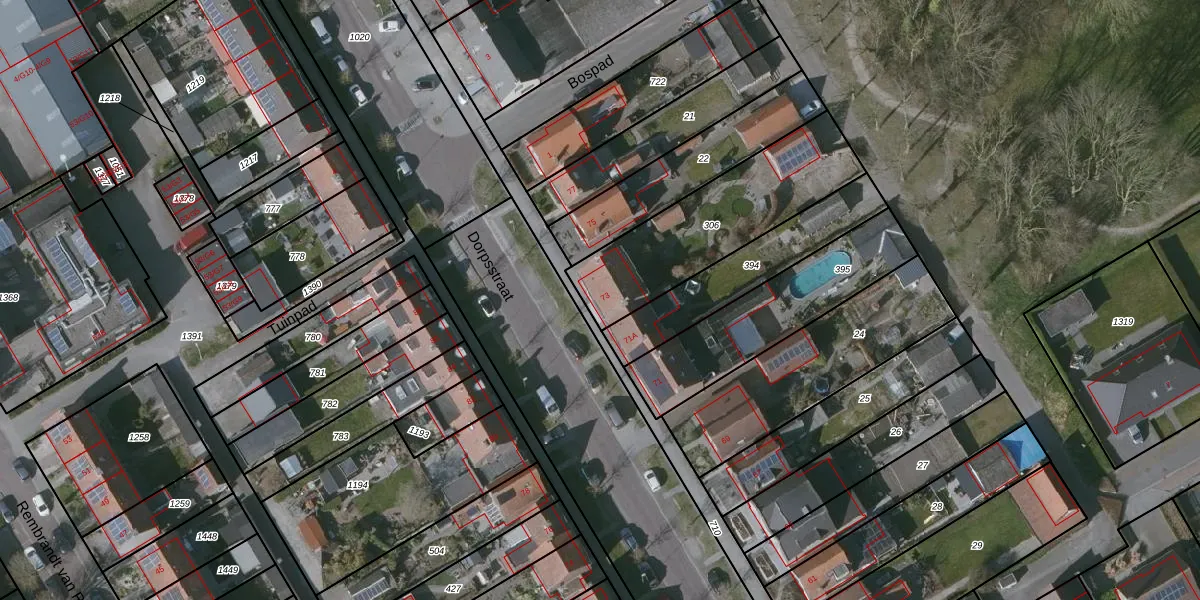Het perceel waarop Dorpsstraat 73 staat heeft een oppervlakte van 615 m². Dit is een groot perceel. De perceeloppervlakte wordt geregistreerd door het Kadaster. Gedetailleerde informatie over de maten van dit perceel kunt u vinden in het rapport Kadastrale kaart met maatvoering van Dorpsstraat 73.