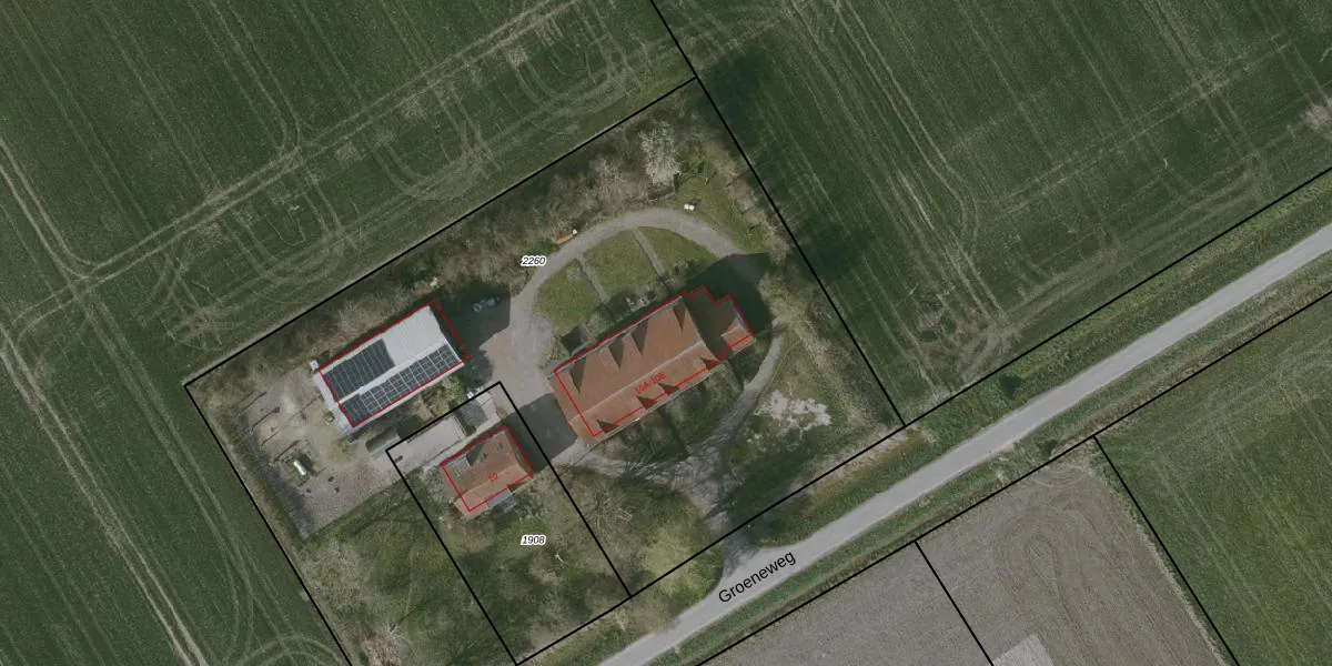 Groeneweg 10-B is gelegen op kadastraal perceel OBG00P2260. Deze kadastrale aanduiding is uniek en wordt gebruikt door het Kadaster om eigendomsrechten en andere zakelijke rechten vast te leggen. Het perceel maakt onderdeel uit van de kadastrale gemeente Oostburg.