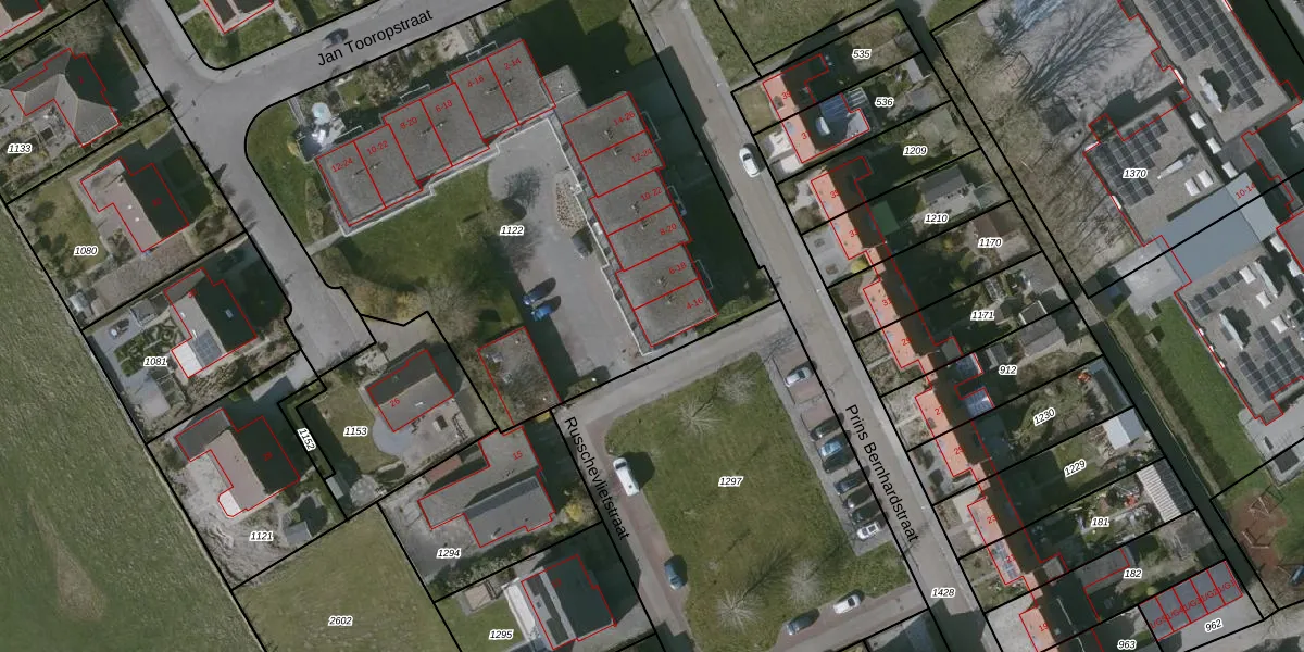 Het perceel waarop Prins Bernhardstraat 4 staat heeft een oppervlakte van 3337 m². Dit is een zeer groot perceel. De perceeloppervlakte wordt geregistreerd door het Kadaster. Gedetailleerde informatie over de maten van dit perceel kunt u vinden in het rapport Kadastrale kaart met maatvoering van Prins Bernhardstraat 4.