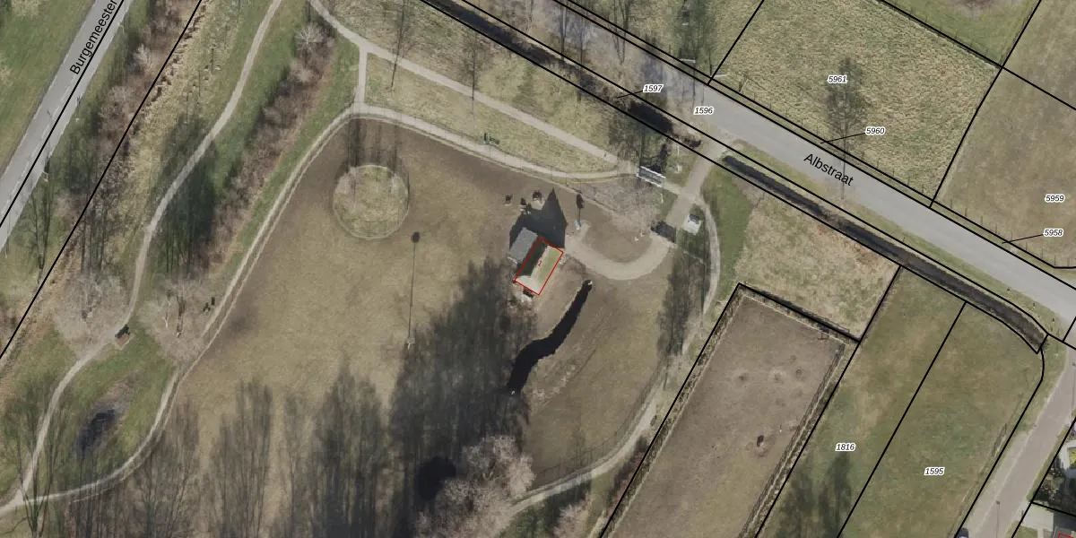 Het perceel waarop Albstraat 1 staat heeft een oppervlakte van 4,4 ha. Dit is een zeer groot perceel. De perceeloppervlakte wordt geregistreerd door het Kadaster. Gedetailleerde informatie over de maten van dit perceel kunt u vinden in het rapport Kadastrale kaart met maatvoering van Albstraat 1.