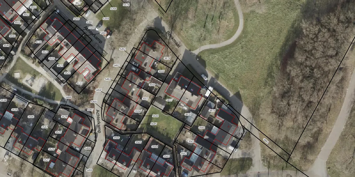 Gebruik de zoekbalk of klik op een perceel voor informatie over de adressen binnen dit perceel.