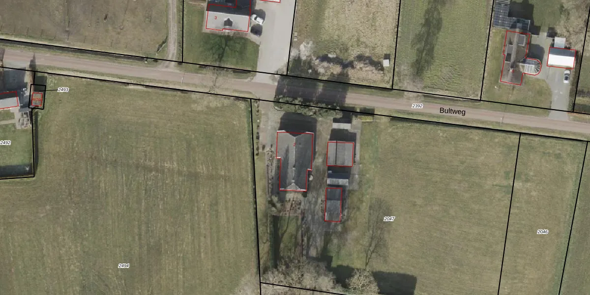 Bultweg 2 is gelegen op kadastraal perceel SNB00C2047. Deze kadastrale aanduiding is uniek en wordt gebruikt door het Kadaster om eigendomsrechten en andere zakelijke rechten vast te leggen. Het perceel maakt onderdeel uit van de kadastrale gemeente Schoonebeek.