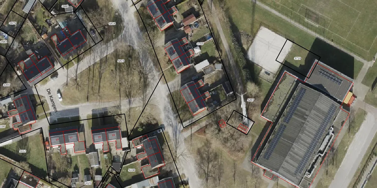 Het perceel waarop De Kampen 24 staat heeft een oppervlakte van 2262 m². Dit is een zeer groot perceel. De perceeloppervlakte wordt geregistreerd door het Kadaster. Gedetailleerde informatie over de maten van dit perceel kunt u vinden in het rapport Kadastrale kaart met maatvoering van De Kampen 24.