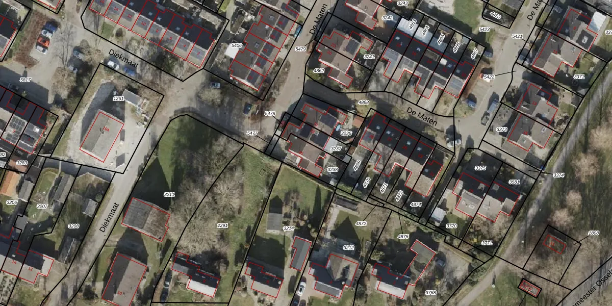 De Maten 35 is gelegen op kadastraal perceel SNB00C3238. Deze kadastrale aanduiding is uniek en wordt gebruikt door het Kadaster om eigendomsrechten en andere zakelijke rechten vast te leggen. Het perceel maakt onderdeel uit van de kadastrale gemeente Schoonebeek.