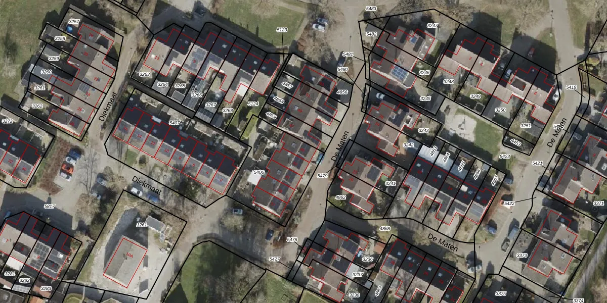 Het perceel waarop De Maten 45 staat heeft een oppervlakte van 657 m². Dit is een groot perceel. De perceeloppervlakte wordt geregistreerd door het Kadaster. Gedetailleerde informatie over de maten van dit perceel kunt u vinden in het rapport Kadastrale kaart met maatvoering van De Maten 45.