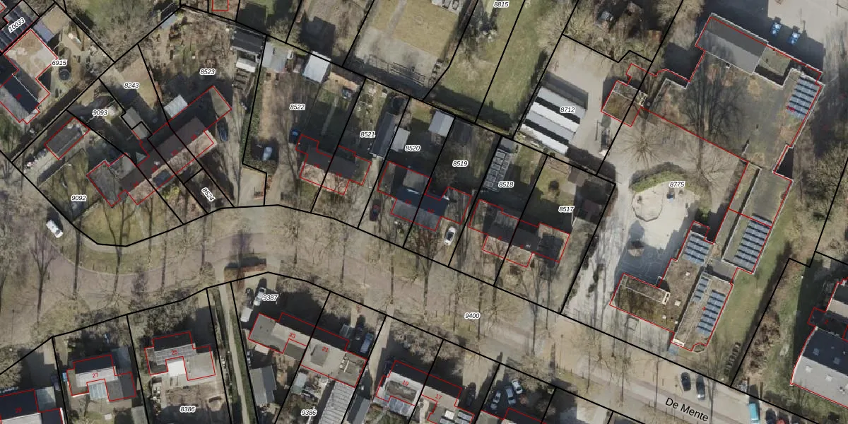 Het perceel waarop De Mente 10 staat heeft een oppervlakte van 393 m². Dit is een groot perceel. De perceeloppervlakte wordt geregistreerd door het Kadaster. Gedetailleerde informatie over de maten van dit perceel kunt u vinden in het rapport Kadastrale kaart met maatvoering van De Mente 10.