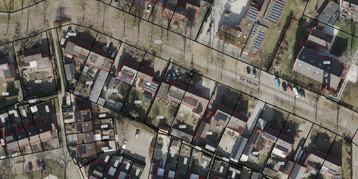 Gebruik de zoekbalk of klik op een perceel voor informatie over de adressen binnen dit perceel.