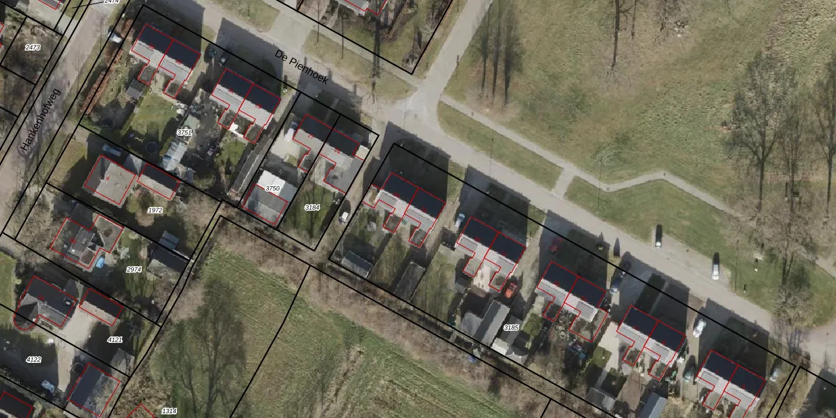 Het perceel waarop De Pienhoek 21 staat heeft een oppervlakte van 3482 m². Dit is een zeer groot perceel. De perceeloppervlakte wordt geregistreerd door het Kadaster. Gedetailleerde informatie over de maten van dit perceel kunt u vinden in het rapport Kadastrale kaart met maatvoering van De Pienhoek 21.