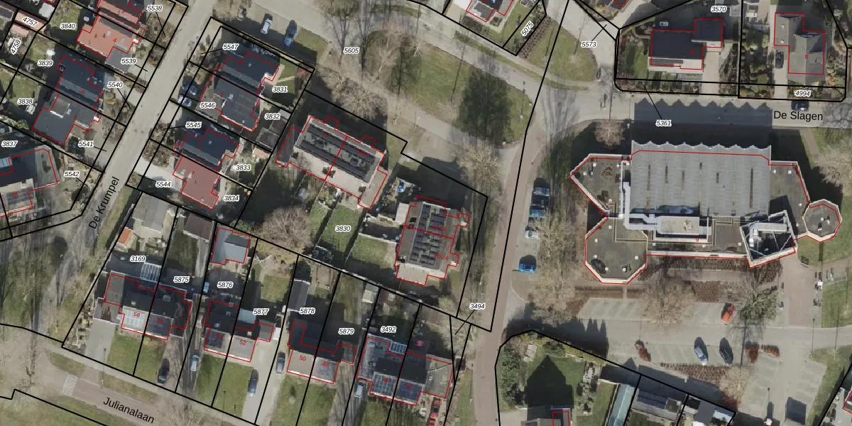 Het perceel waarop De Slagen 14 staat heeft een oppervlakte van 1731 m². Dit is een zeer groot perceel. De perceeloppervlakte wordt geregistreerd door het Kadaster. Gedetailleerde informatie over de maten van dit perceel kunt u vinden in het rapport Kadastrale kaart met maatvoering van De Slagen 14.