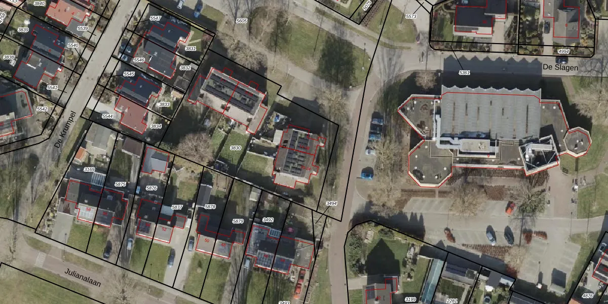 De Slagen 18 is gelegen op kadastraal perceel SNB00C3830. Deze kadastrale aanduiding is uniek en wordt gebruikt door het Kadaster om eigendomsrechten en andere zakelijke rechten vast te leggen. Het perceel maakt onderdeel uit van de kadastrale gemeente Schoonebeek.