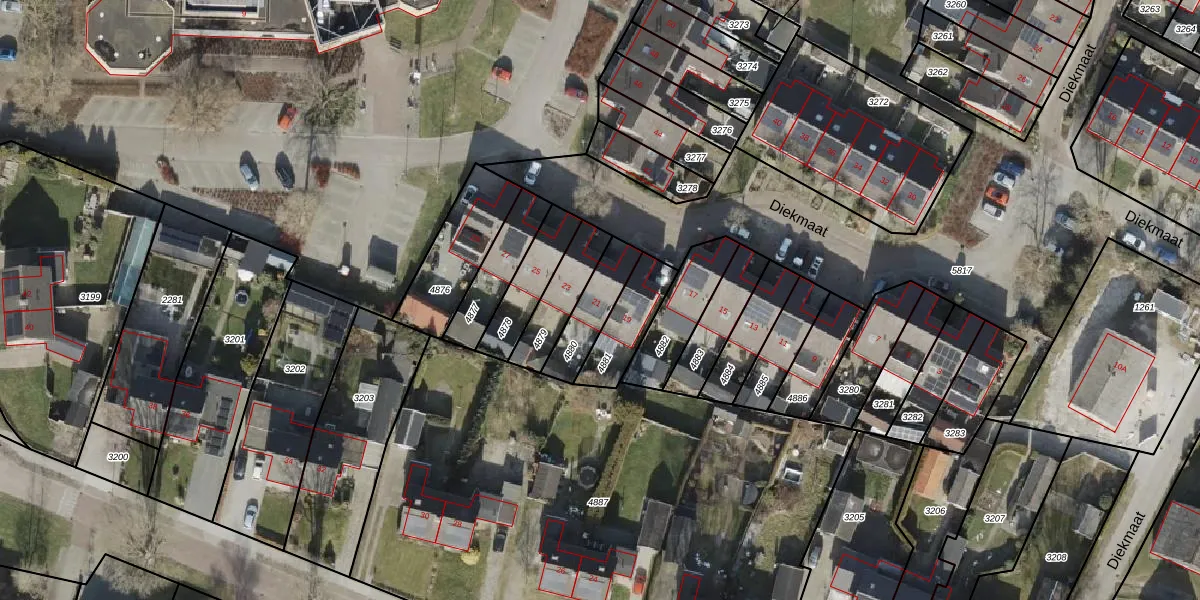Het perceel waarop Diekmaat 21 staat heeft een oppervlakte van 144 m². Dit is een middelgroot perceel. De perceeloppervlakte wordt geregistreerd door het Kadaster. Gedetailleerde informatie over de maten van dit perceel kunt u vinden in het rapport Kadastrale kaart met maatvoering van Diekmaat 21.
