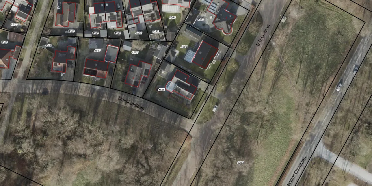 E.E.G.-laan 1 is gelegen op kadastraal perceel SNB00C4585. Deze kadastrale aanduiding is uniek en wordt gebruikt door het Kadaster om eigendomsrechten en andere zakelijke rechten vast te leggen. Het perceel maakt onderdeel uit van de kadastrale gemeente Schoonebeek.