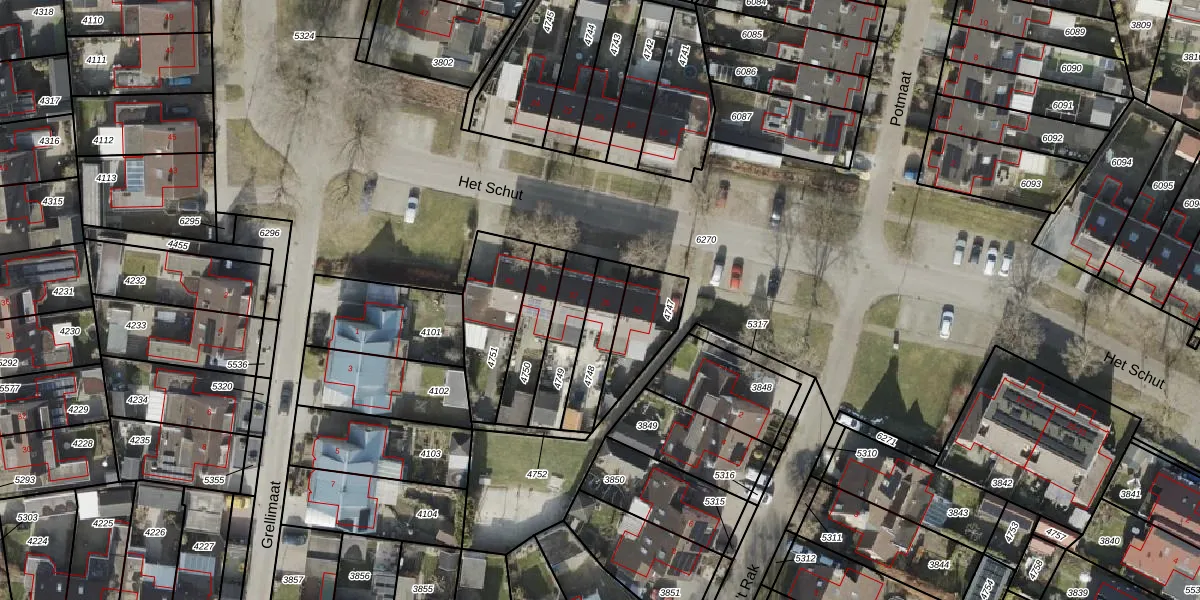 Het perceel waarop Het Schut 35 staat heeft een oppervlakte van 156 m². Dit is een middelgroot perceel. De perceeloppervlakte wordt geregistreerd door het Kadaster. Gedetailleerde informatie over de maten van dit perceel kunt u vinden in het rapport Kadastrale kaart met maatvoering van Het Schut 35.