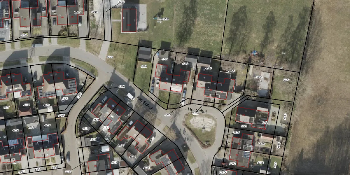 Het perceel waarop Het Schut 40 staat heeft een oppervlakte van 352 m². Dit is een groot perceel. De perceeloppervlakte wordt geregistreerd door het Kadaster. Gedetailleerde informatie over de maten van dit perceel kunt u vinden in het rapport Kadastrale kaart met maatvoering van Het Schut 40.