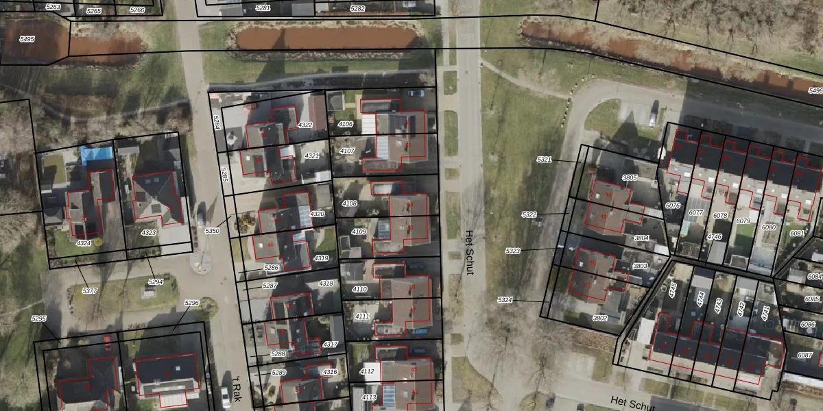 Gebruik de zoekbalk of klik op een perceel voor informatie over de adressen binnen dit perceel.