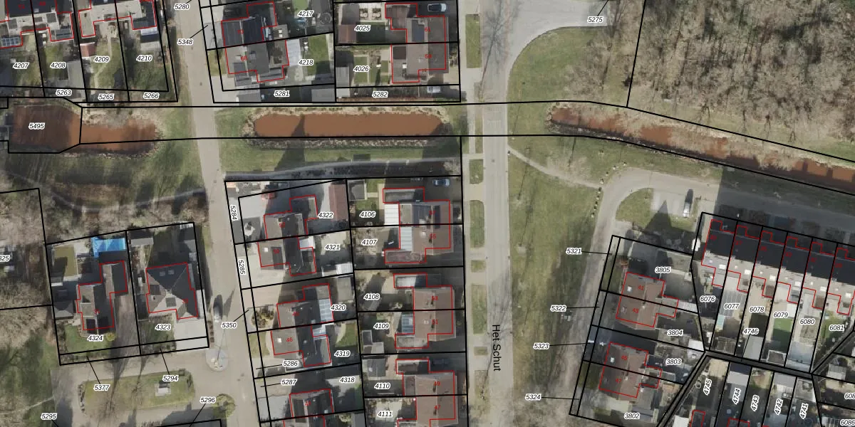 Het perceel waarop Het Schut 57 staat heeft een oppervlakte van 301 m². Dit is een groot perceel. De perceeloppervlakte wordt geregistreerd door het Kadaster. Gedetailleerde informatie over de maten van dit perceel kunt u vinden in het rapport Kadastrale kaart met maatvoering van Het Schut 57.