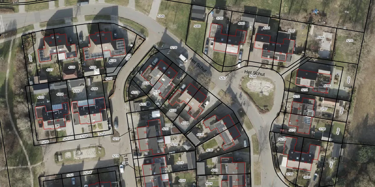 Het perceel waarop Het Schut 73 staat heeft een oppervlakte van 246 m². Dit is een middelgroot perceel. De perceeloppervlakte wordt geregistreerd door het Kadaster. Gedetailleerde informatie over de maten van dit perceel kunt u vinden in het rapport Kadastrale kaart met maatvoering van Het Schut 73.