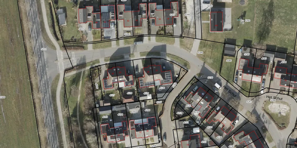 Het perceel waarop Het Schut 81 staat heeft een oppervlakte van 335 m². Dit is een groot perceel. De perceeloppervlakte wordt geregistreerd door het Kadaster. Gedetailleerde informatie over de maten van dit perceel kunt u vinden in het rapport Kadastrale kaart met maatvoering van Het Schut 81.