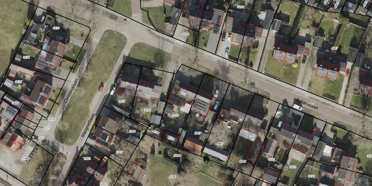 Het perceel waarop Julianalaan 21 staat heeft een oppervlakte van 492 m². Dit is een groot perceel. De perceeloppervlakte wordt geregistreerd door het Kadaster. Gedetailleerde informatie over de maten van dit perceel kunt u vinden in het rapport Kadastrale kaart met maatvoering van Julianalaan 21.